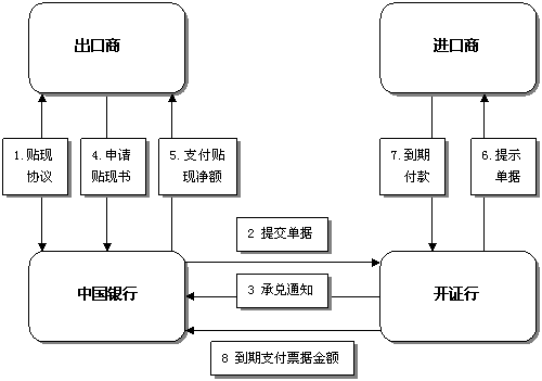 4.我行在收到承兌/承付后,客戶應(yīng)向我行提交業(yè)務(wù)申請(qǐng)書(shū),將貼現(xiàn)款項(xiàng)入出口商賬戶。